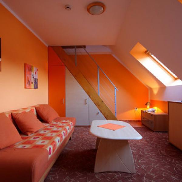 K dispozícii sú jednopodlažné izby a apartmány vybavené lôžkami pre jednu alebo dve osoby. Vybrané izby danej kategórie sú architektonicy dvojpodlažné. V spodnej časti sa nachádza rozťahovacia sedacia súprava (možnosť prístelky), vstup na sociálne zariadenie a ďaľšia štandardná výbava. Na poschodí je situovaná samostatná lôžková časť.
